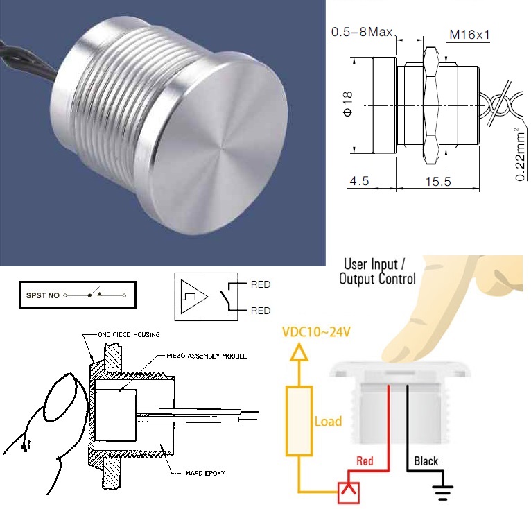 Pulsador Piezoeléctrico 0Y01 18mm Plano