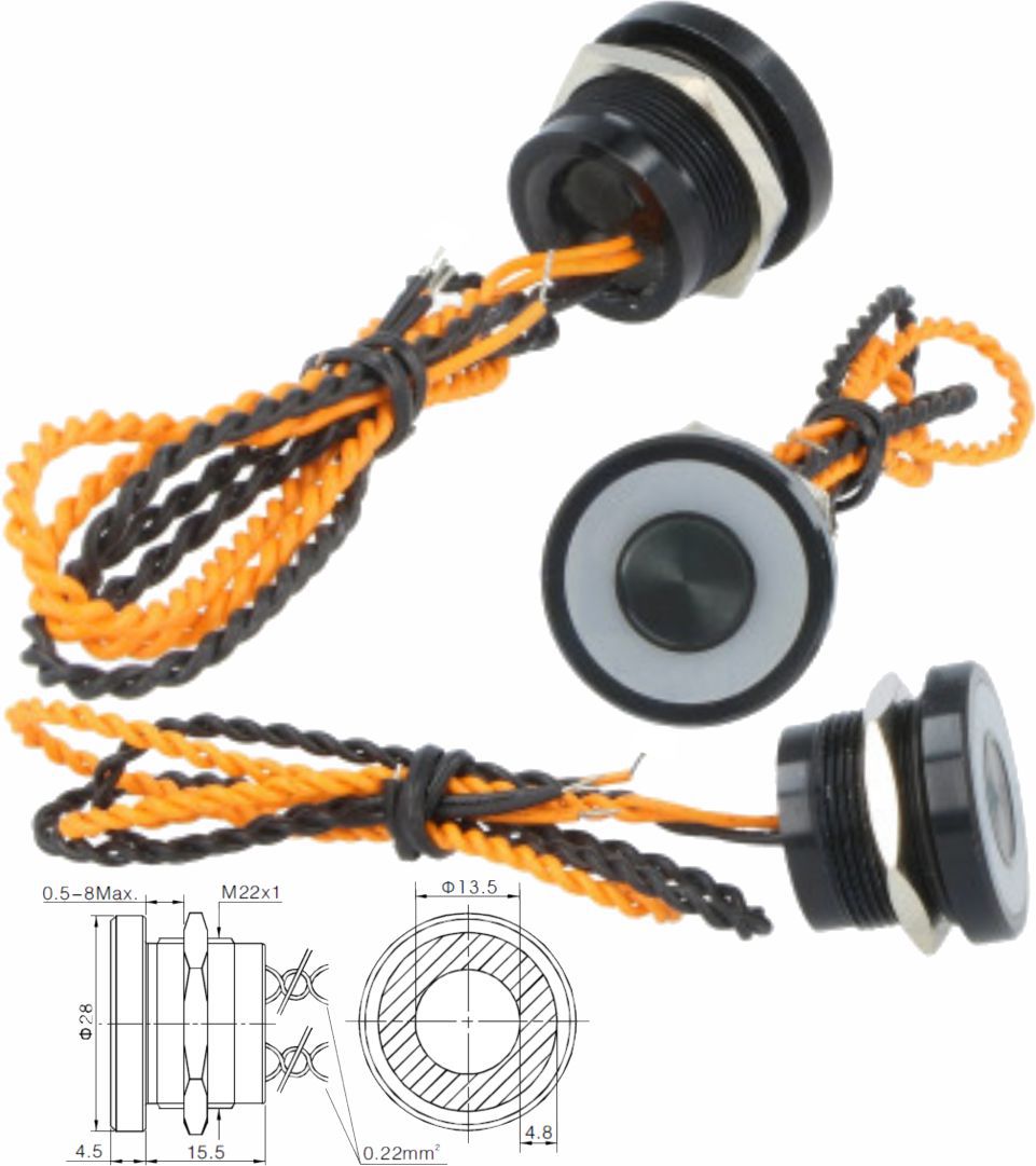 Pulsador Piezoeléctrico 0Y01 28mm Plano. 24v