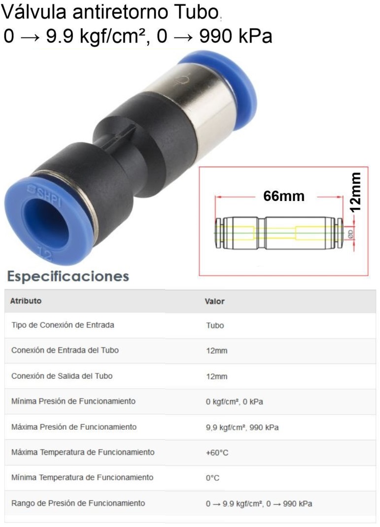 Valvula Antirretorno Conexion Socket 0-990kPa, 10mm