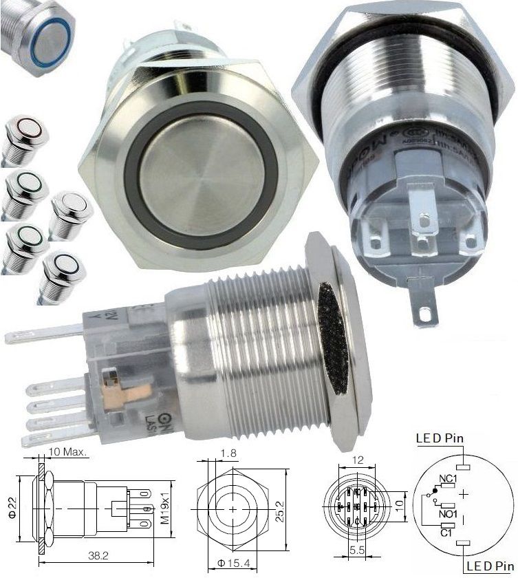 Pulsador conmutado de panel Antivandalos 19mm 1C