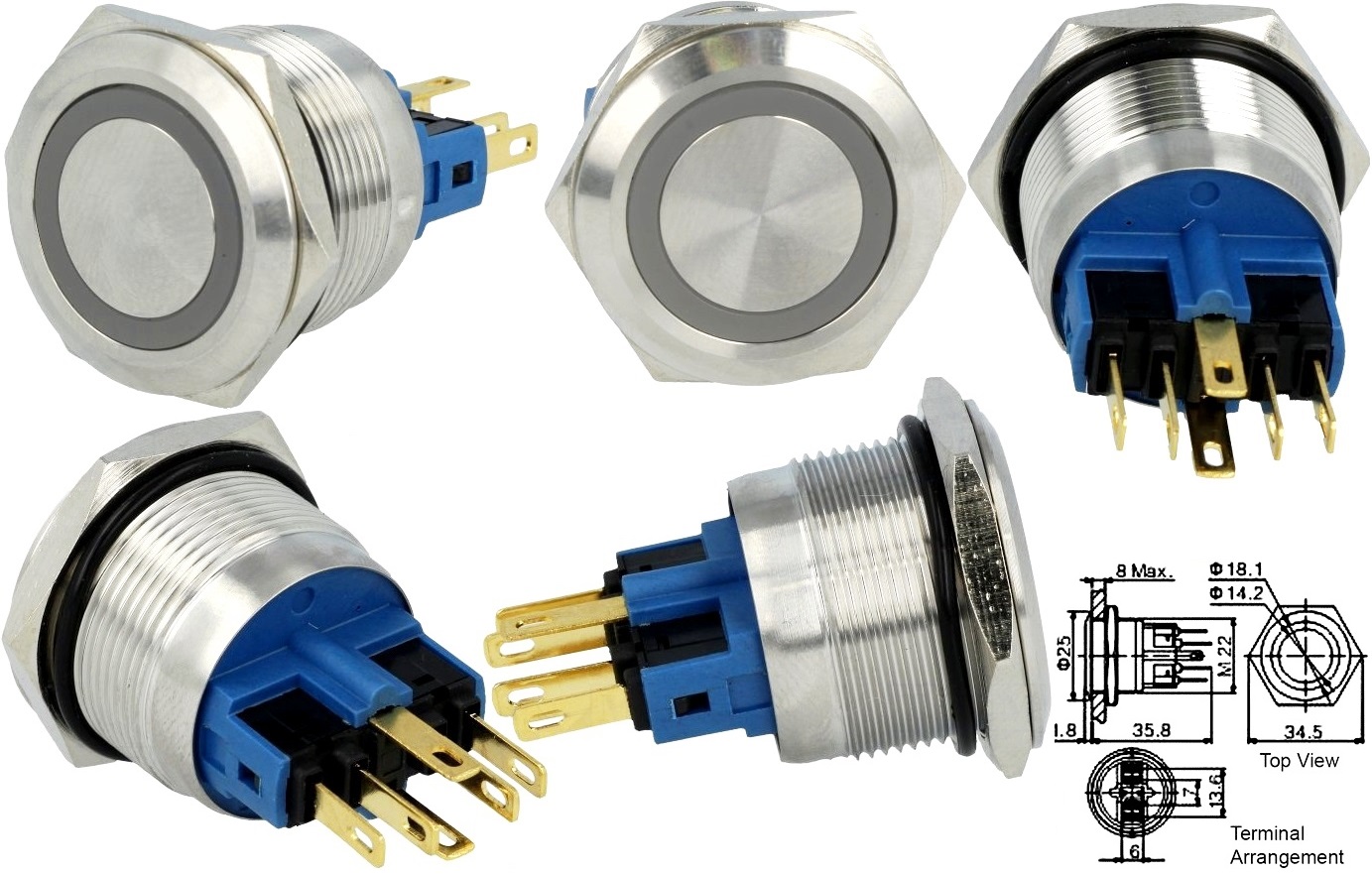 Pulsador conmutador de panel Anti-Vandalos 25S con Led Anillo