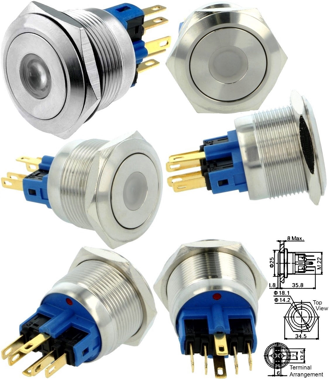 Pulsador conmutado de panel Antivandalos 25S con Led Punto