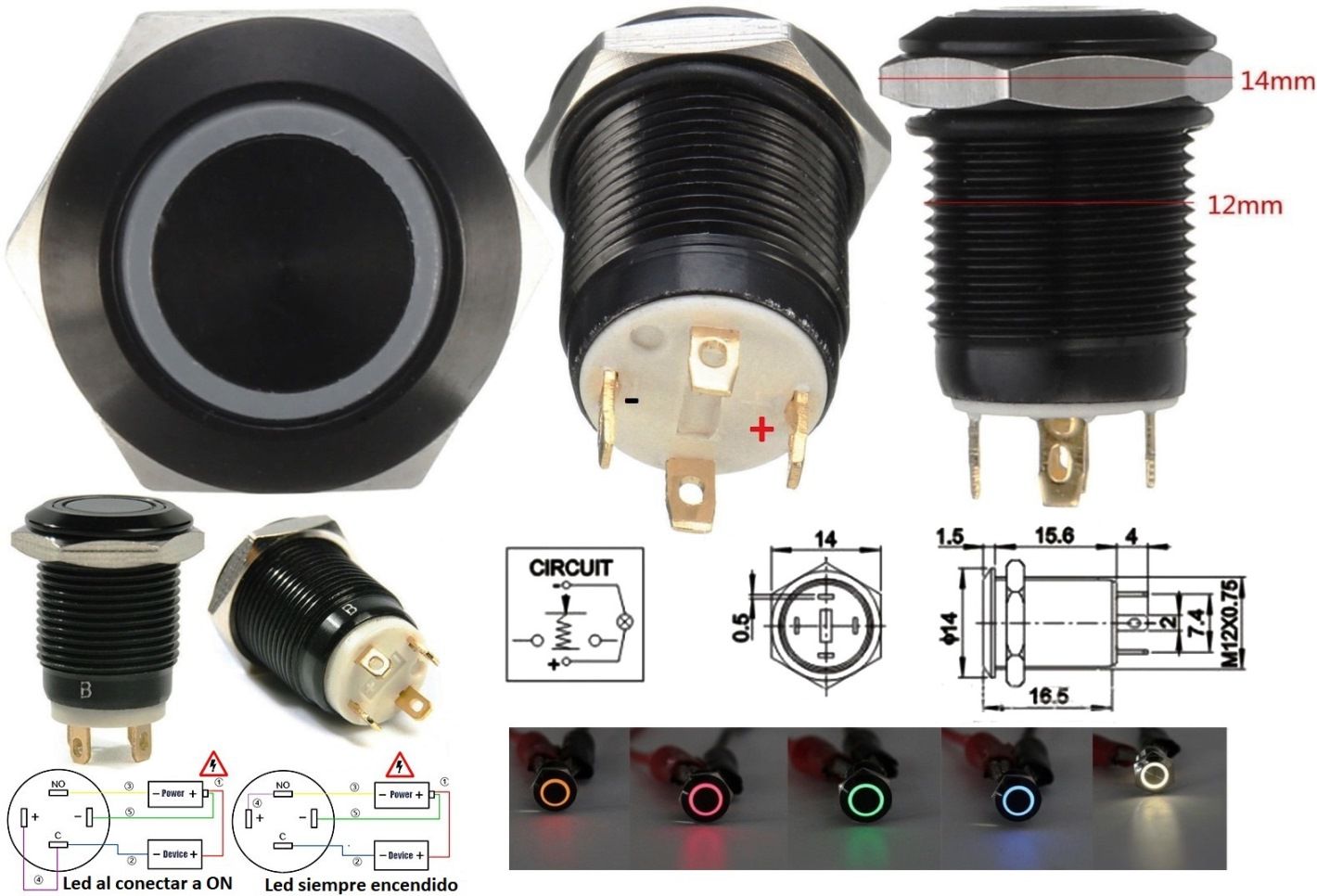 Botón redondo de 10mmIdeal para vehículos, cuadro de mandos, etc