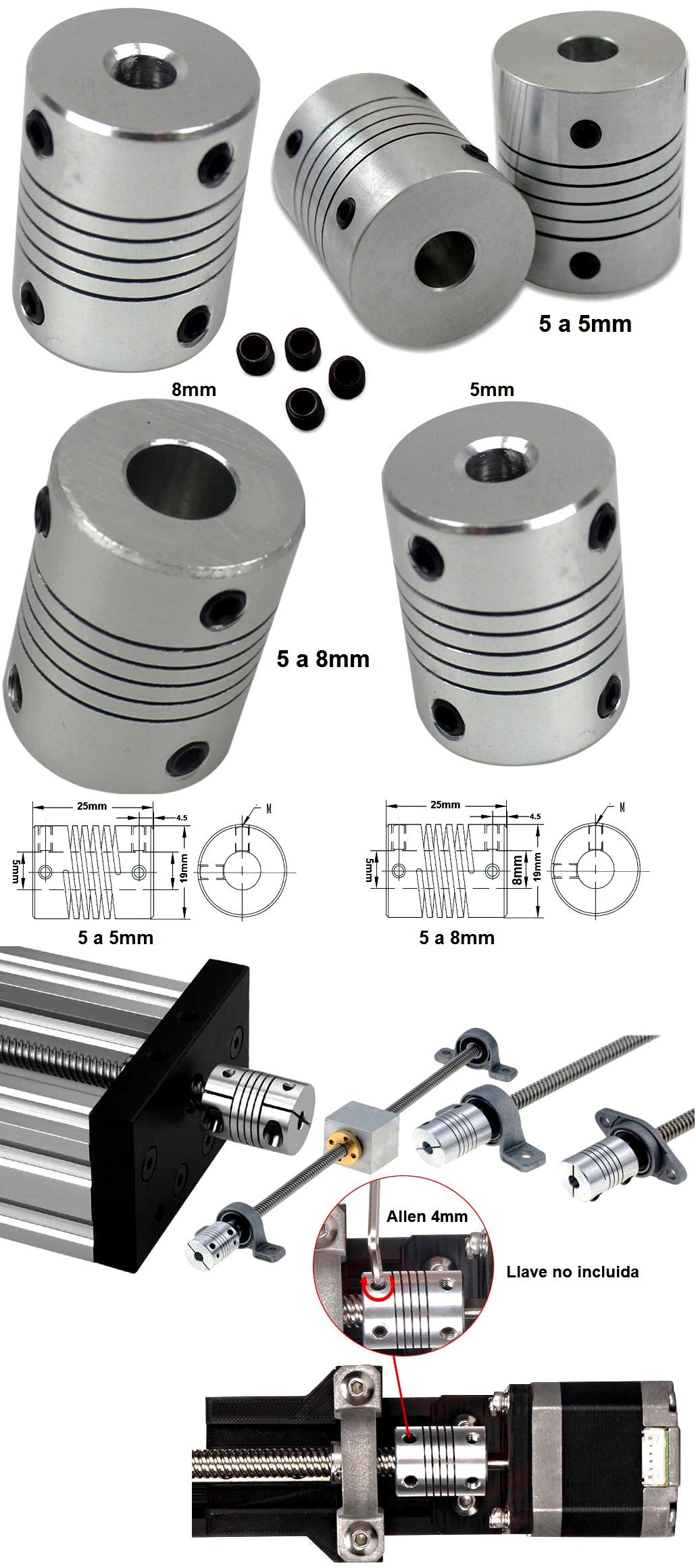 Medidas Eje: 5 a 6mm, 5 a 5mm, 6 a 6mm, 6 a 8mm, 8 a 8mm y 5 a 8mm