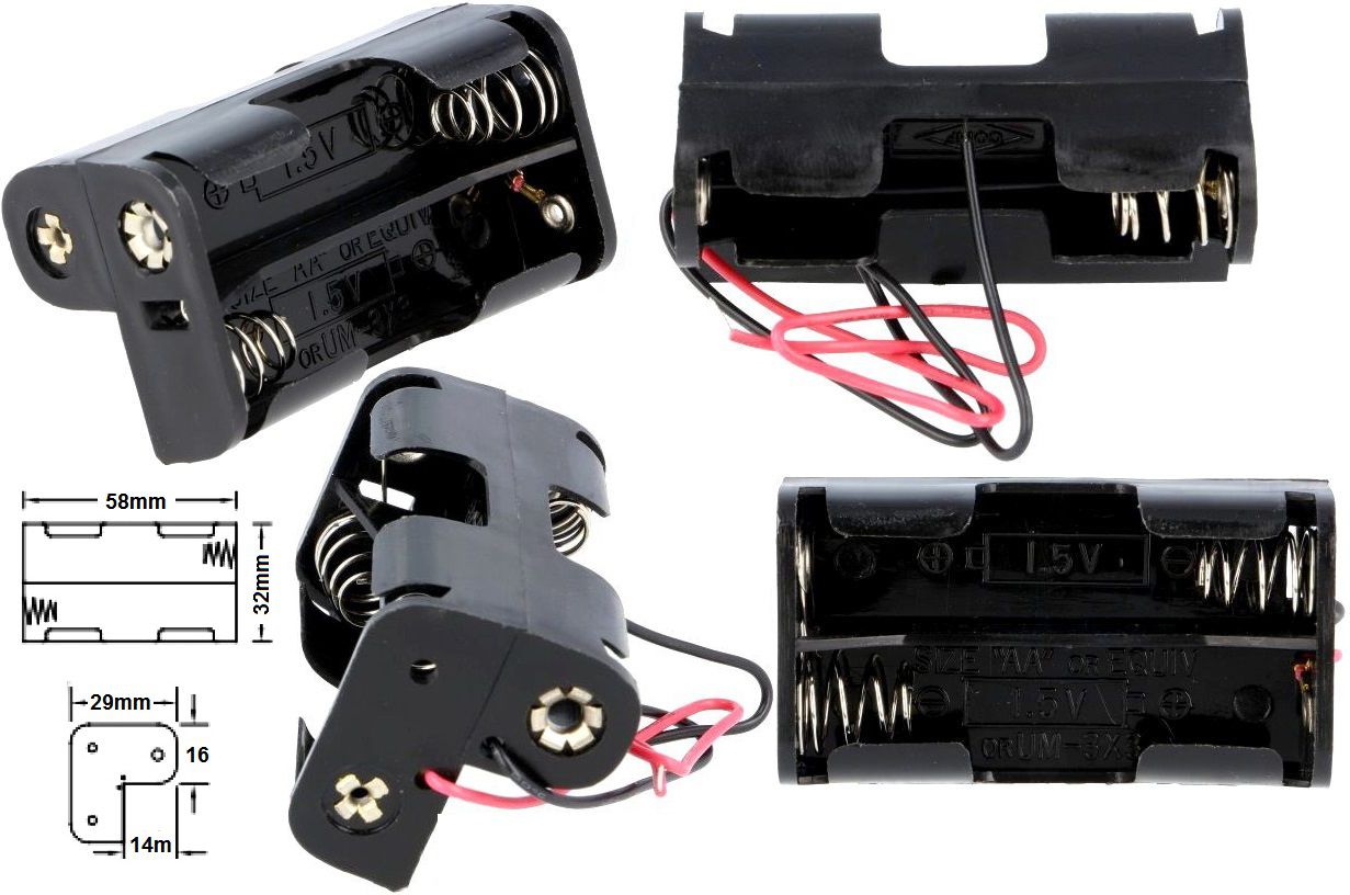 Portapilas 3xAA, R6 14500, tipo 2x1