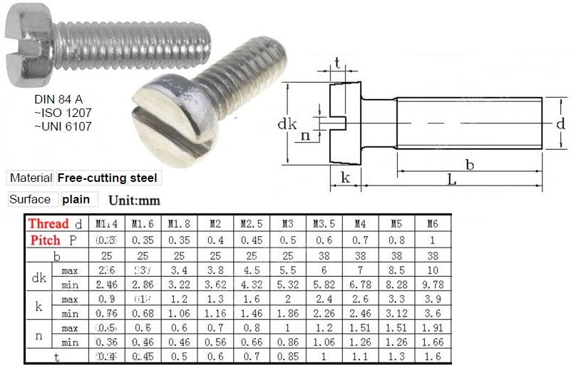 Micro Tornillos cabeza plana Din84, Acero Cincado