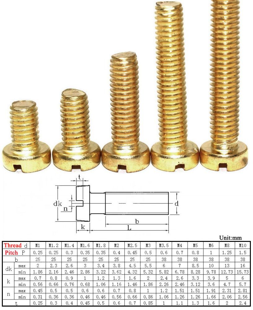 Micro tornillos de latón dorados con cabeza plana DIN84 Métrica 1.2mm