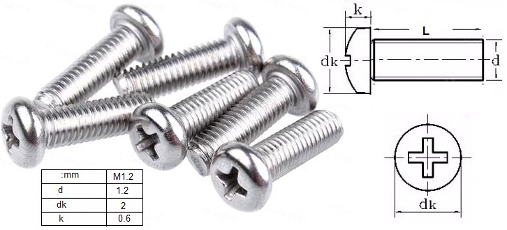 Micro Tornillos M1.2 de acero Din7985 Cabeza redonda de Cruz