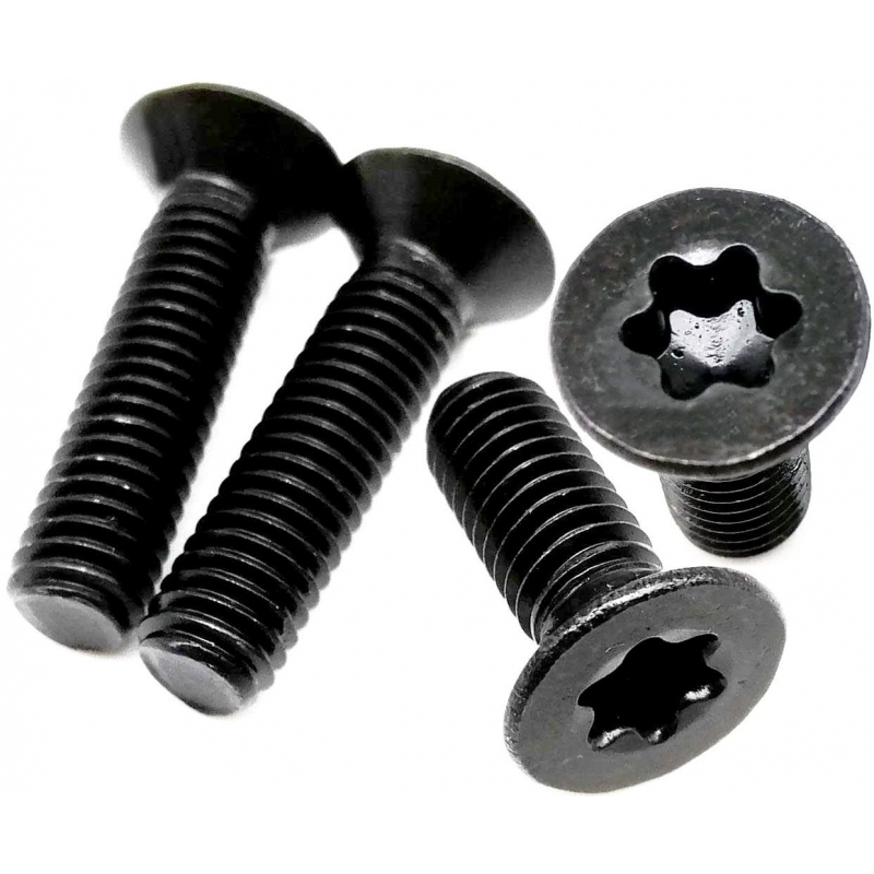 tornillos especiales de seguridad tipo TORX de 6 puntas de acero en negro.